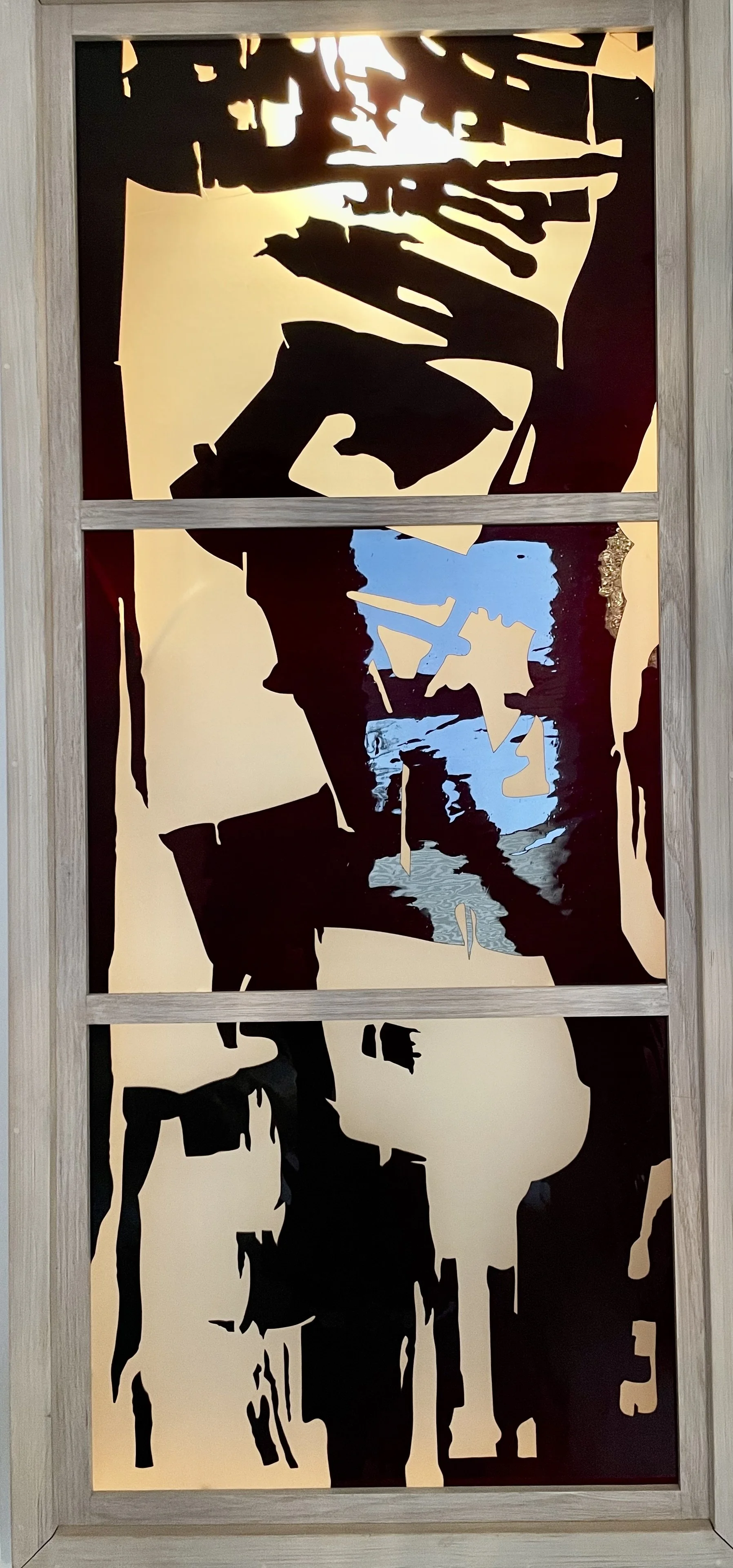 Zuschnitt von Überfang Glas, achtantik, Sandstrahlen 61 x 131 cm